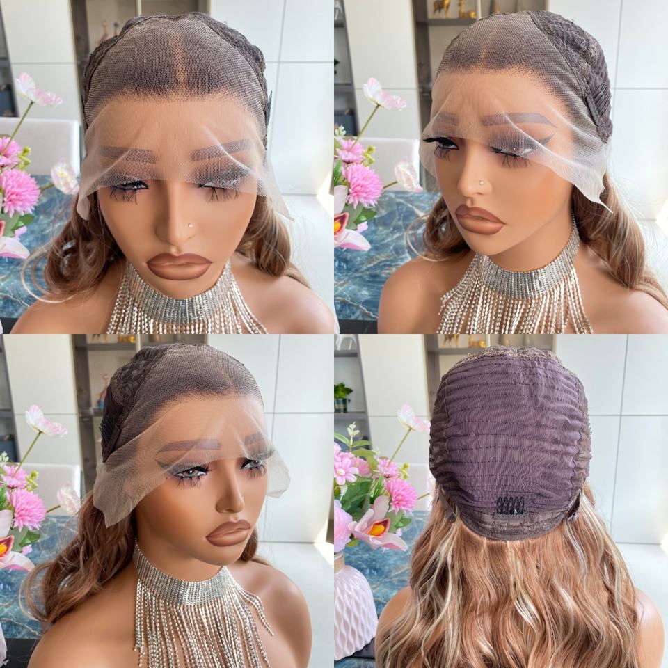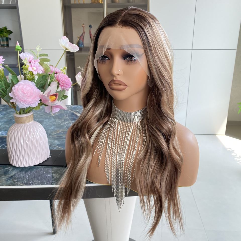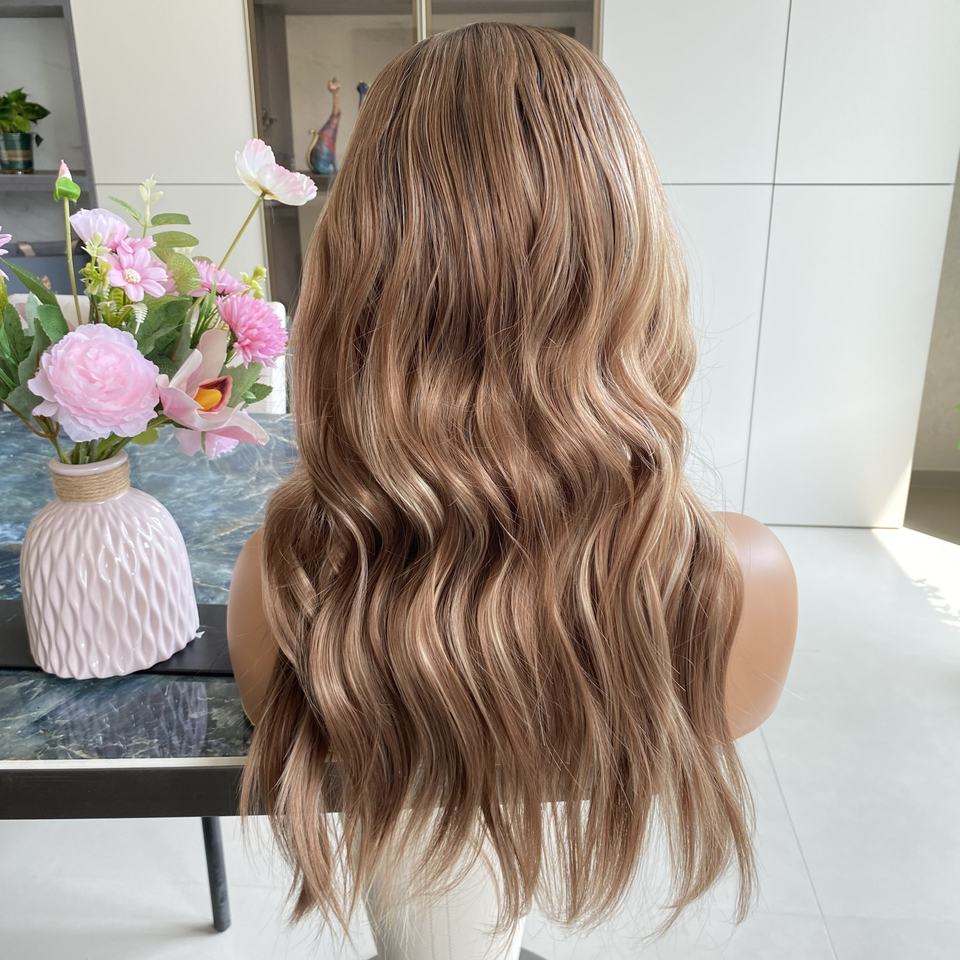 วิกผมใยสังเคราะห์แบบโปร่งใส 13x4 คุณภาพสูง วิกผมลอนหลวมสีบลอนด์น้ำผึ้งผสมเส้นใย