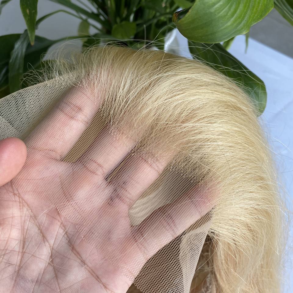ลูกไม้โปร่งใสเส้นผมมนุษย์บางด้านหน้าสานยุโรปสีบลอนด์ #613สีสั้นความยาวสวิส HD ลูกไม้ด้านหน้าวิกผม
