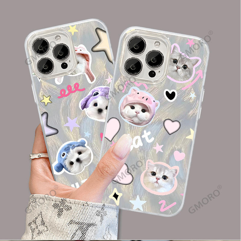 เคสโทรศัพท์มือถือแบบแข็งลายการ์ตูนแมวพิมพ์ลายขนนกโปร่งแสงรูใหญ่ ป้องกันการกระแทก สำหรับผู้หญิง