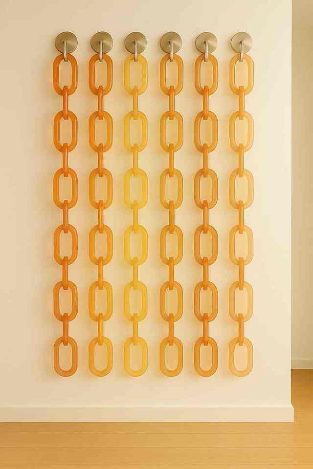 งานศิลปะตกแต่งผนังแบบโซ่เชื่อมต่อกันทำจากเรซิ่นสีฟ้าใส ประติมากรรมวงแหวนอะคริลิกแบบประกบกัน สำหรับตกแต่งภายในบ้าน โรงแรม แบบแขวน