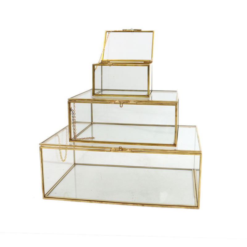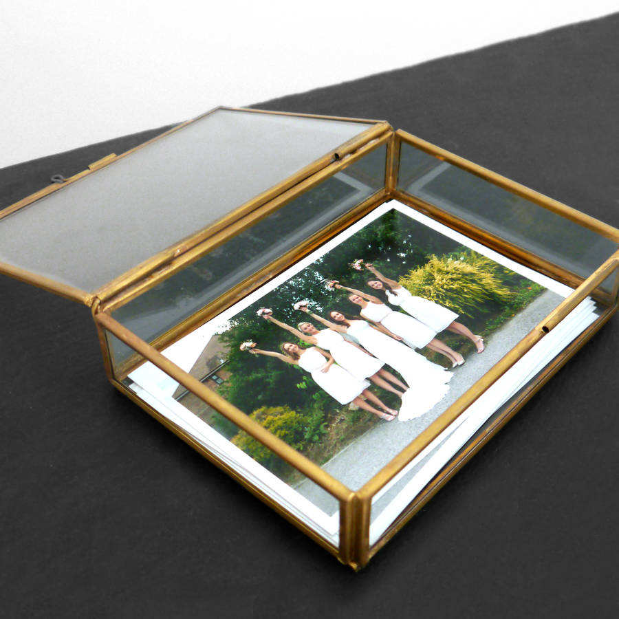 Transparent Modern Rectangle Jewelry Wedding Baby Memories Book Print Memory Album Customized Size Brass Glass Gold Edges Photo