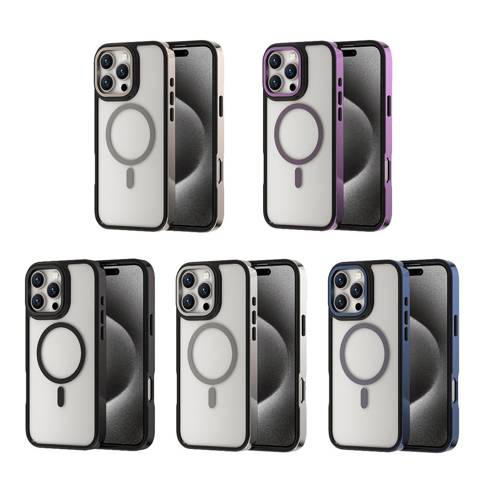 เคสป้องกันโทรศัพท์มือถือแม่เหล็กหลายสีโปร่งใสป้องกันการลื่นสำหรับ iPhone 16 PRO MAX