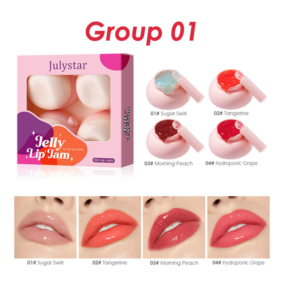เซ็ตลิปกลอสเนื้อเจลใส ฉ่ำวาว ติดทนนาน ใช้ได้ทั้งแก้มและปาก ชุ่มชื้น ติดง่าย สีสวย ขนาดพกพา 4 กรัม*4 ชิ้น