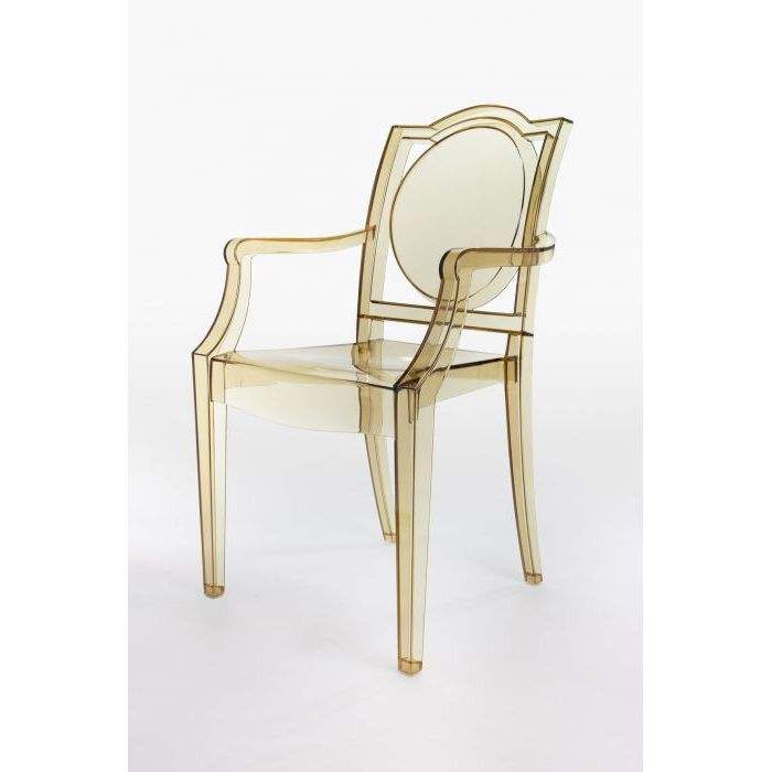 เก้าอี้ผีโพลีคาร์บอเนตโปร่งใสมีที่วางแขน70LA100A_bncl ตัวเลือกสีเหลืองอำพันพาเลท16ชิ้น