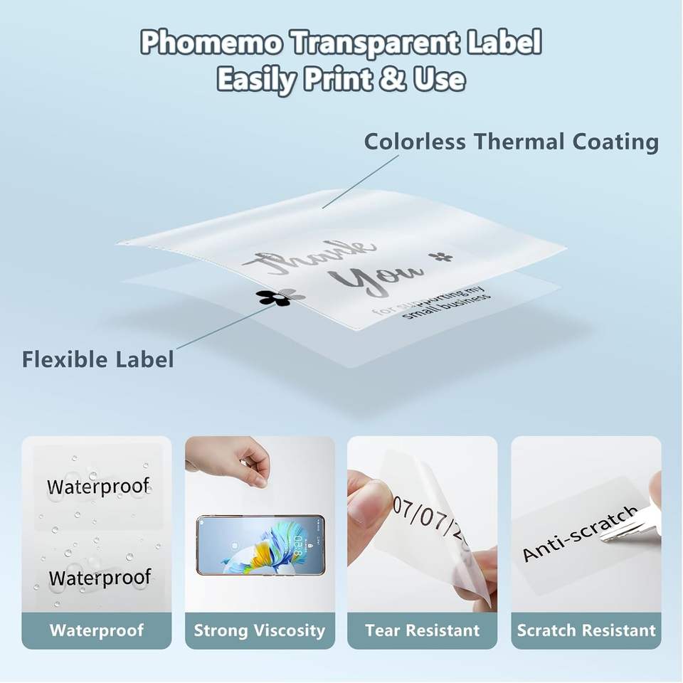 กระดาษเครื่องพิมพ์ความร้อนแบบมีกาวในตัวใสสำหรับ M110 phomemo M220/M120/M150/M250เครื่องพิมพ์ฉลากกระดาษแฟกซ์