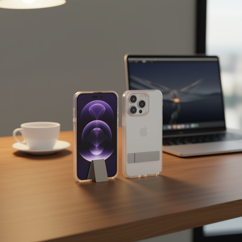 เคสโทรศัพท์มือถือ TPU กันกระแทกแบบใส + PC พร้อมแถบขาตั้งสำหรับ12 PRO MAX