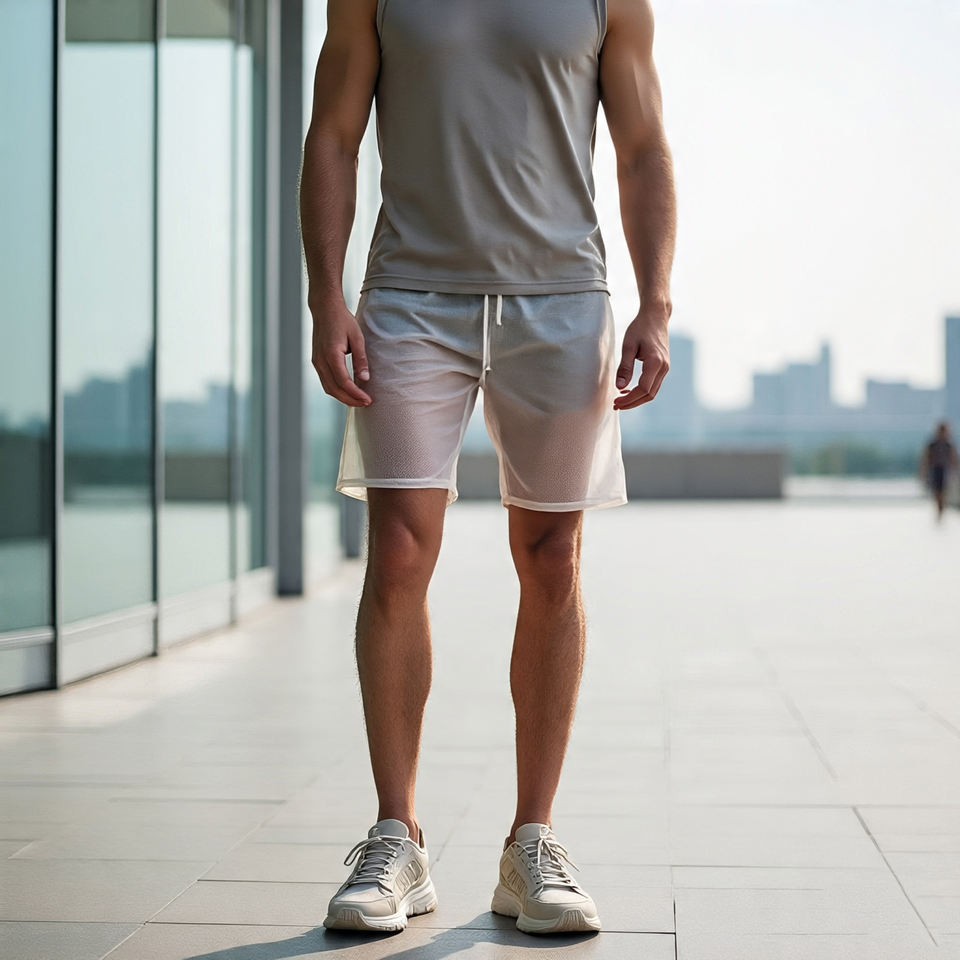 ชื่อผลิตภัณฑ์:กางเกงขาสั้นผ้าตาข่ายโปร่งผู้ชาย
