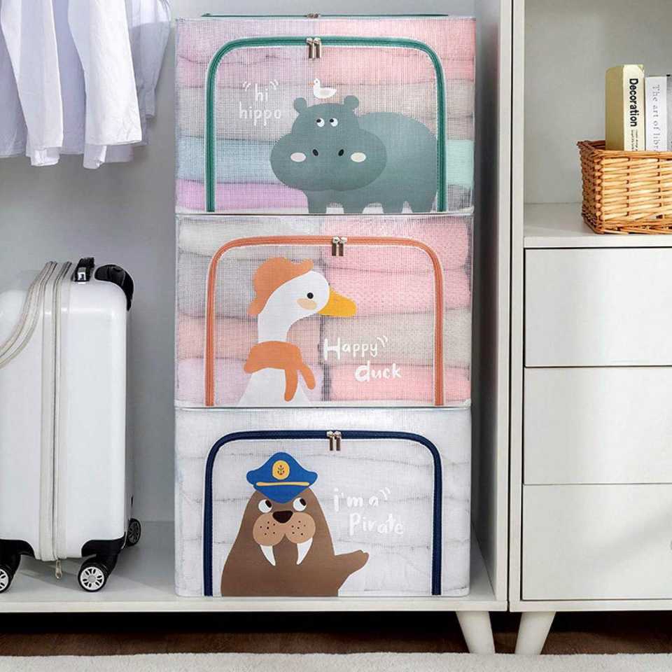 กล่องเก็บของในตู้เสื้อผ้าแบบใส พับได้ ทำจากพีวีซี พร้อมซิปคู่