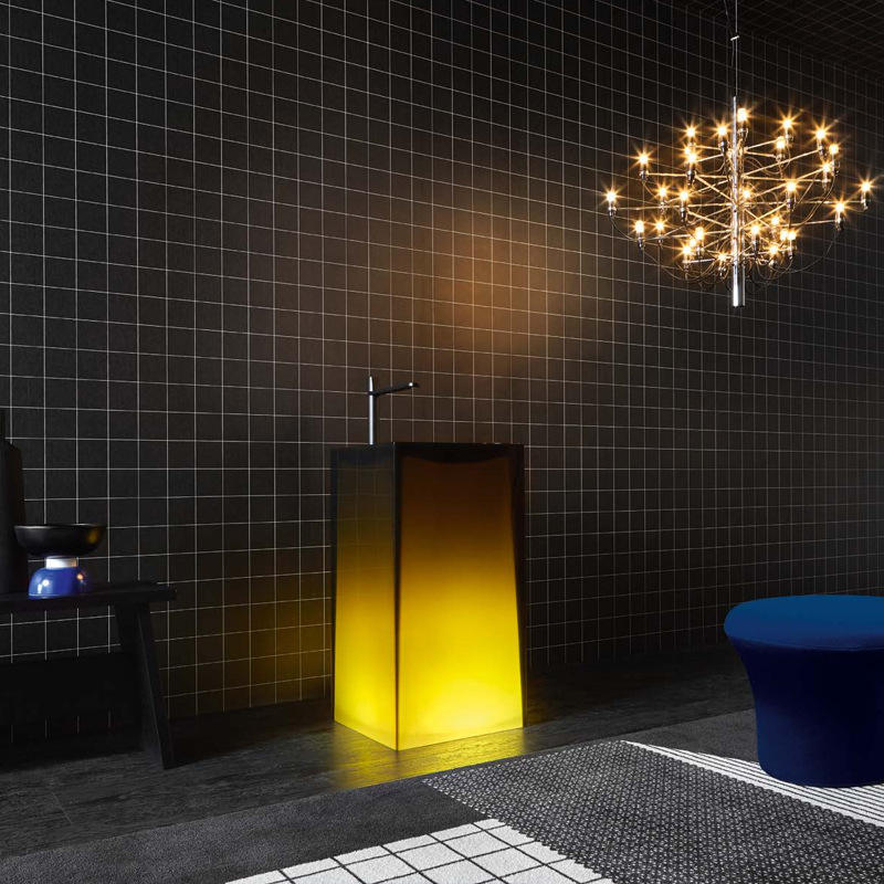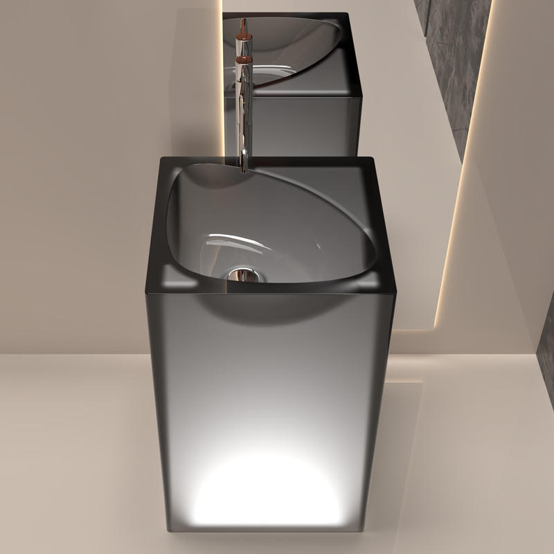 อ่างล้างหน้ารูปคอลัมน์โปร่งใสและเรืองแสงห้องน้ำคริสตัลตั้งพื้นห้องน้ำห้องนอนมีศิลปะวิลล่า