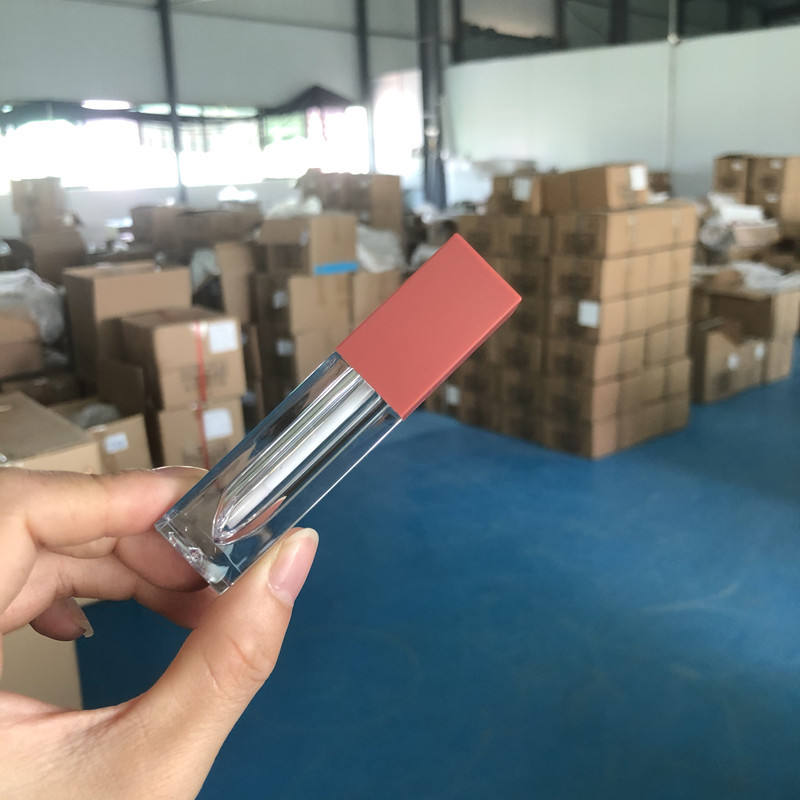 วัสดุบรรจุภัณฑ์เครื่องสำอางสามารถพิมพ์โลโก้ได้หลอดลิปกลอสใสทรงสี่เหลี่ยม