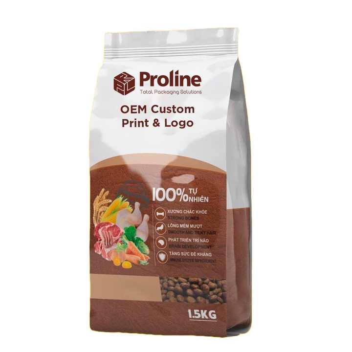 กระเป๋าแบบตั้งโปร่งใสกระเป๋าไมลาร์เวียดนามก้นแบนพลาสติกบรรจุภัณฑ์อาหารสุนัขแมวขายส่งง่ายต่อการจัดเก็บ
