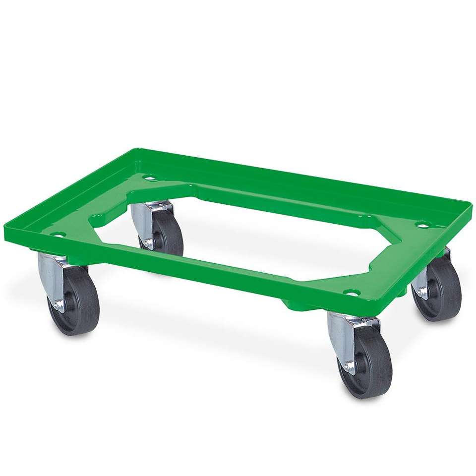 รถขนย้ายขนาด600x400มม. europhälter เด็ค offenes 4เลนโรลเลน, schwarze kunstoffräder, grün