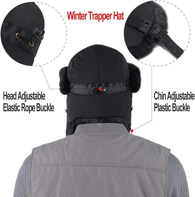 หมวกคนดักสัตว์สำหรับฤดูหนาวผู้หญิงผู้ชายกันลมมีซับในสำหรับฤดูหนาว