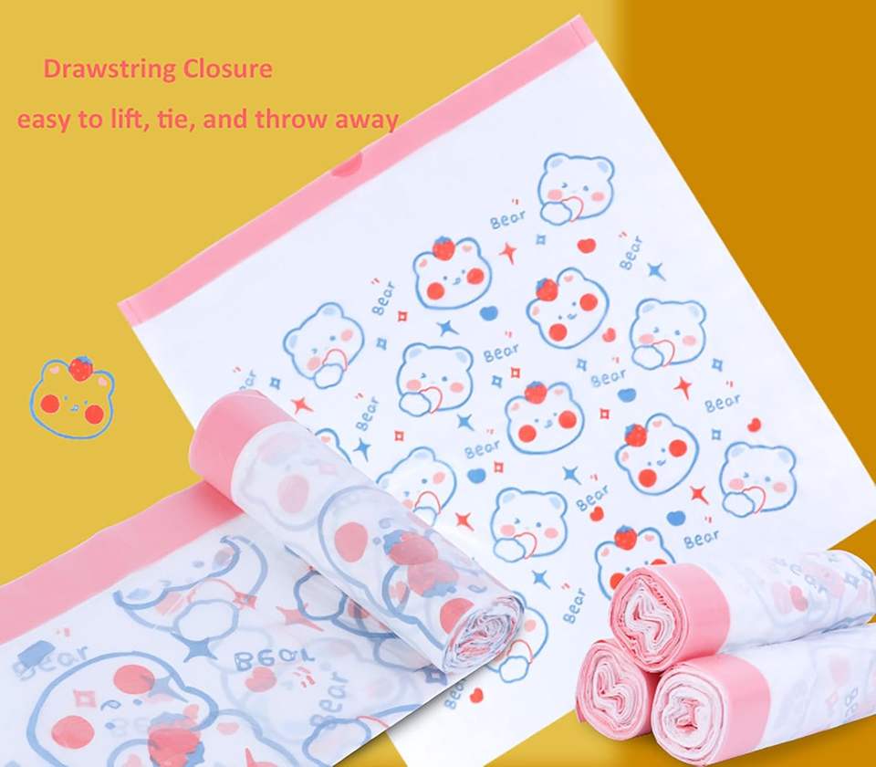 ถุงขยะ - ถุงขยะแบบมีเชือกรูดขนาดเล็ก หนา ทนทาน สำหรับห้องน้ำ ห้องครัว ห้องนอน สำนักงาน ห้องสุขา และบ้าน