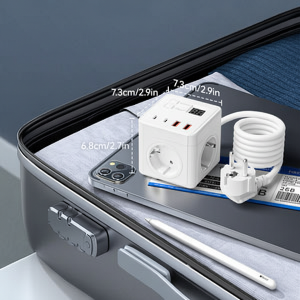 อะแดปเตอร์สำหรับเดินทางอเนกประสงค์ 7 ใน 1 ออลอินวันพร้อมระบบป้องกันการชาร์จเกิน วัสดุ ABS พอร์ตอินพุต AC 100-240V