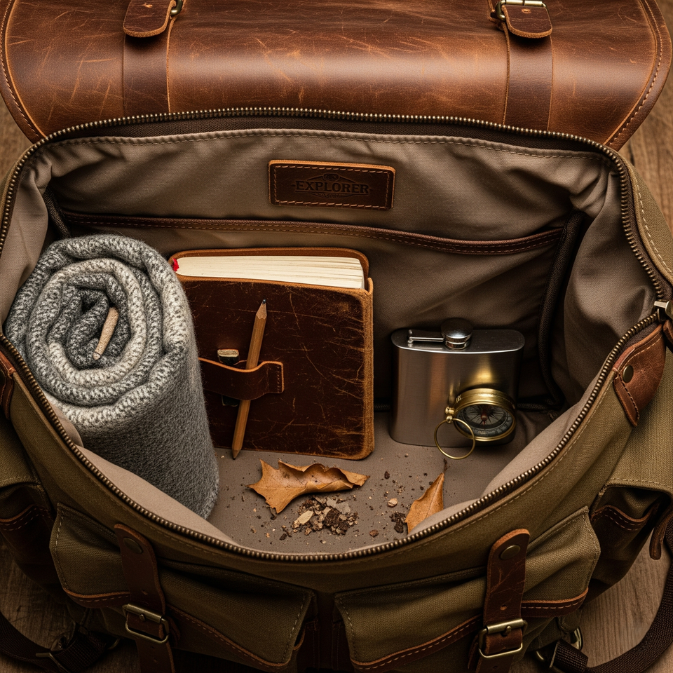 กระเป๋าเป้สะพายหลังทำจากหนังแคนวาสสำหรับเดินป่าปีนเขาผ้าฝ้ายทนทานและหนังควายปรับแต่งได้