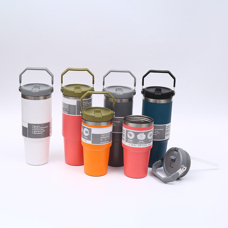 แก้วน้ำแบบมีหูจับ ฝาปิด หลอดดูด ดื่มได้โดยตรง สำหรับการเดินทาง แคมป์ปิ้ง พิมพ์โลโก้ได้ตามต้องการ ผนังสองชั้น PP&PC เป็นมิตรกับสิ่งแวดล้อม สไตล์อเมริกัน