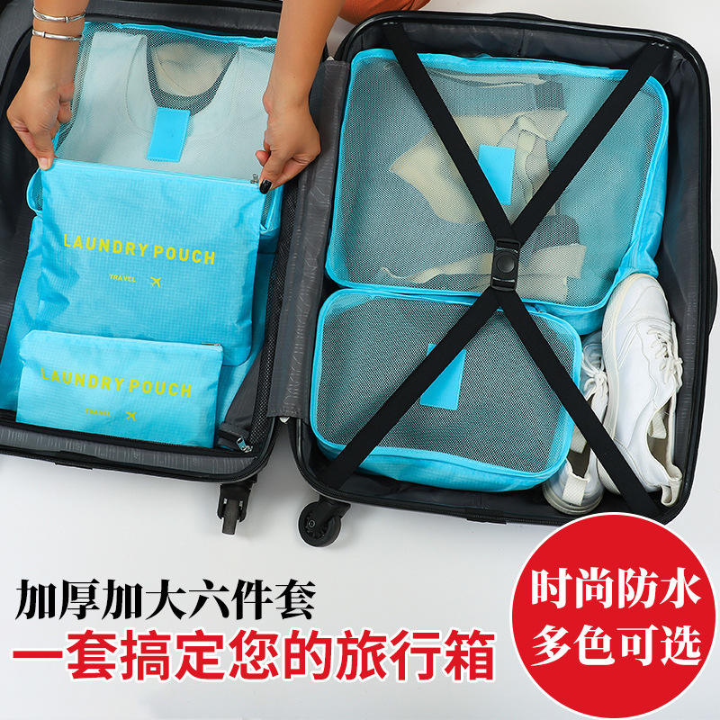 Travel Clothing Organizer Set 6pcs Blue Rectangle Polyester Laundry Pouches Daily Necessities Storage Bag
