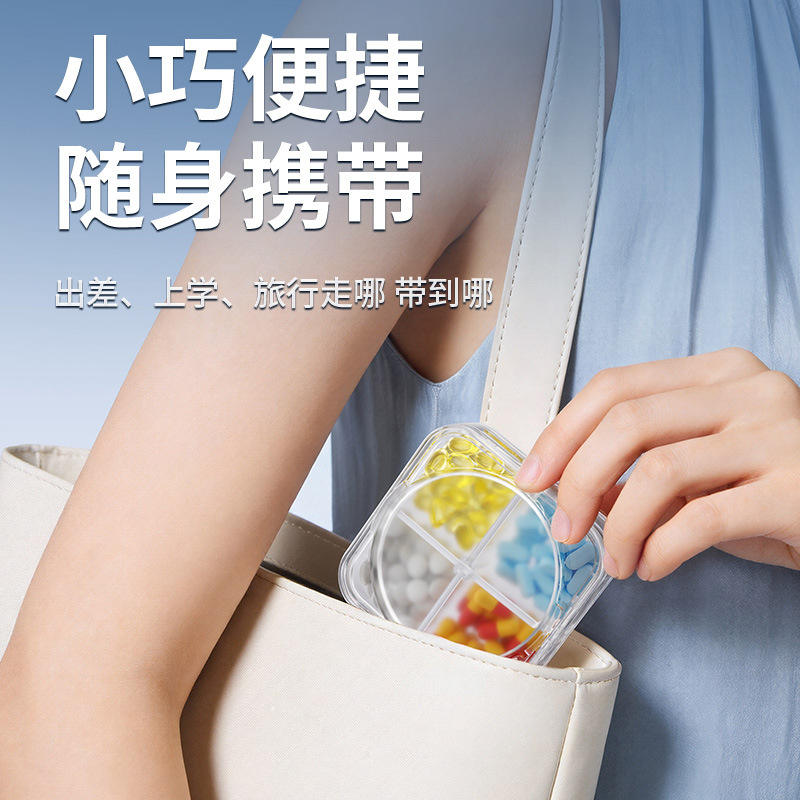 กล่องใส่ยาพกพาสะดวก 4 ช่อง วัสดุพลาสติก ปิดผนึกได้ สำหรับจัดเก็บอาหารประจำวันระหว่างเดินทาง