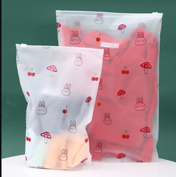 ถุงซิปใส่เสื้อผ้าแบบพกพา วัสดุ PE แบบฝ้า พร้อมซิปล็อค สำหรับจัดเก็บเสื้อผ้า นำกลับมาใช้ใหม่ได้ ทนทาน ขนาดและโลโก้สั่งทำได้ พร้อมบริการสกรีนโลโก้