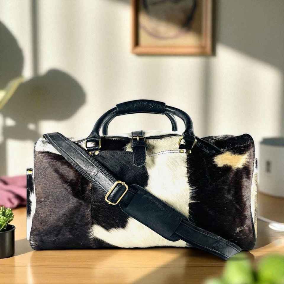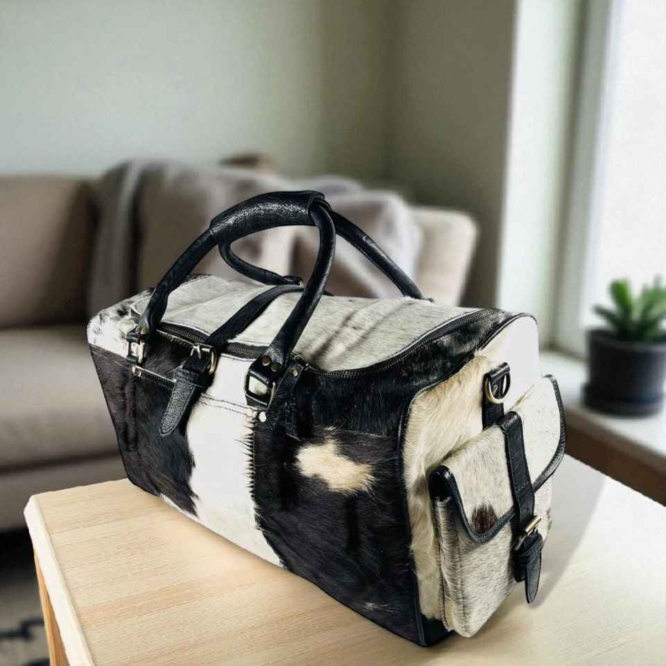 Genuine Leather Hair On Duffle Bag