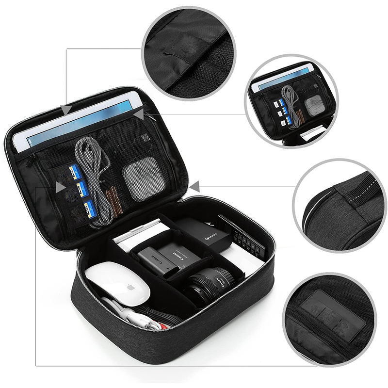 กระเป๋าจัดระเบียบสายเคเบิลแบบพกพา ทนทาน มีซิป 4-6 ช่อง สำหรับอุปกรณ์อิเล็กทรอนิกส์ หูฟัง และอุปกรณ์เดินทาง