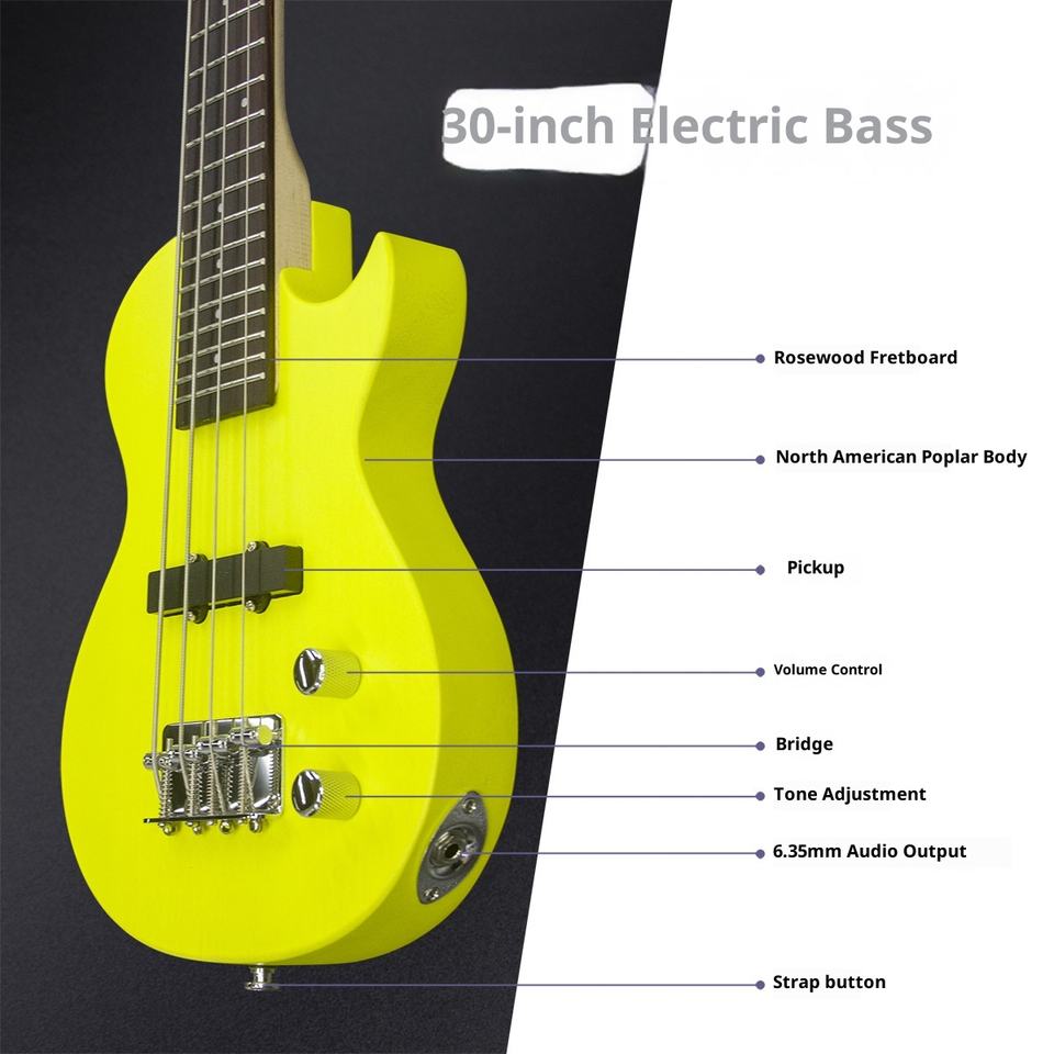 กีตาร์เบสไฟฟ้าขนาดเล็ก 30 นิ้ว สี่สาย คอไม้เมเปิล ผิวด้าน ขายส่ง สำหรับผู้เริ่มต้น ระดับเริ่มต้น สำหรับเด็ก
