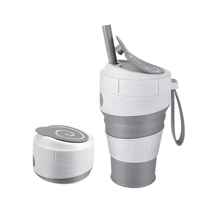 แก้วมัคซิลิโคนพับได้พร้อมฝาปิดสำหรับเดินทางแก้วมักแบบพับเก็บได้น้ำหนักเบาใช้ซ้ำได้ถ้วยกาแฟแบบพับเก็บได้
