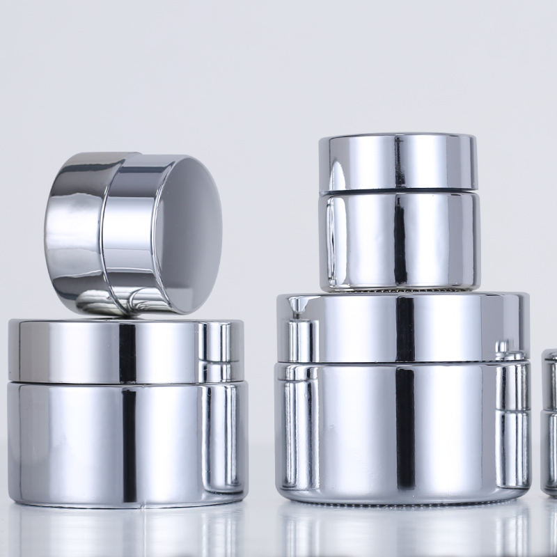 ขวดครีมแก้วเปล่าขนาดพกพา 5 กรัม 50 กรัม ภาชนะเครื่องสำอางสีเงินสำหรับใส่เครื่องสำอาง
