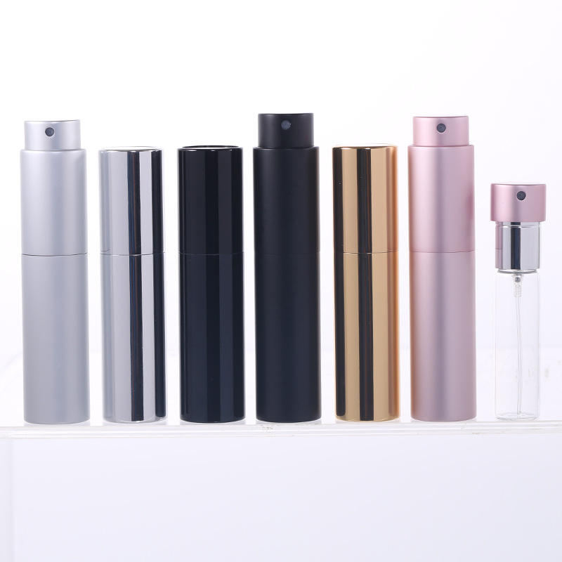 ขวดเติมน้ำหอมแบบพกพาขนาด 8 มล. 10 มล. แบบสเปรย์อะลูมิเนียมพร้อมห่วงสำหรับบรรจุภัณฑ์เครื่องสำอาง