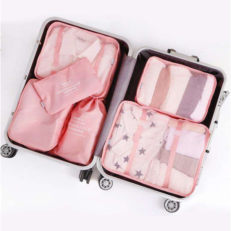 กระเป๋าเดินทาง 6 ชิ้น ชุดออแกไนเซอร์สไตล์เกาหลีสำหรับการเดินทางพักผ่อนพร้อมล้อ 4 ล้อ สีเทา สีชมพู สีกรมท่า