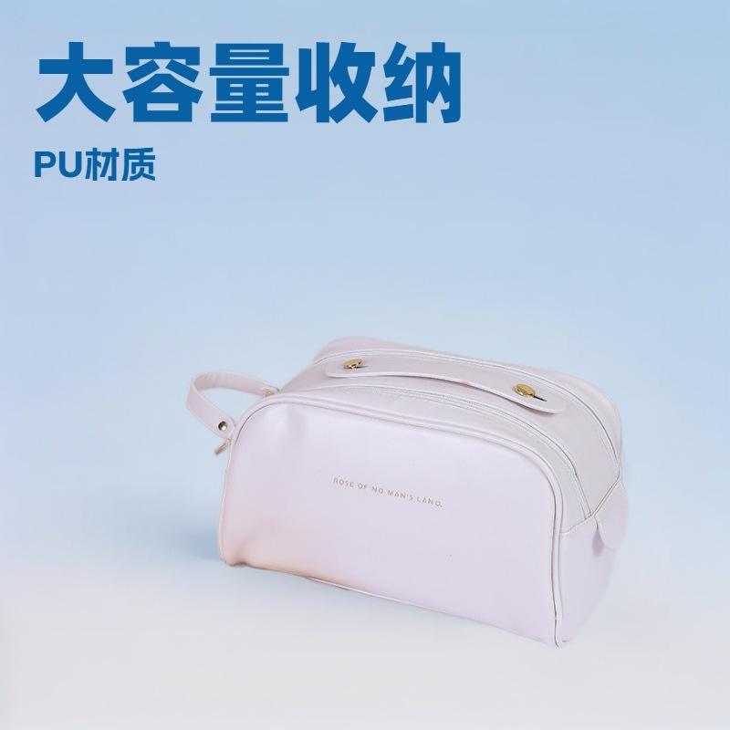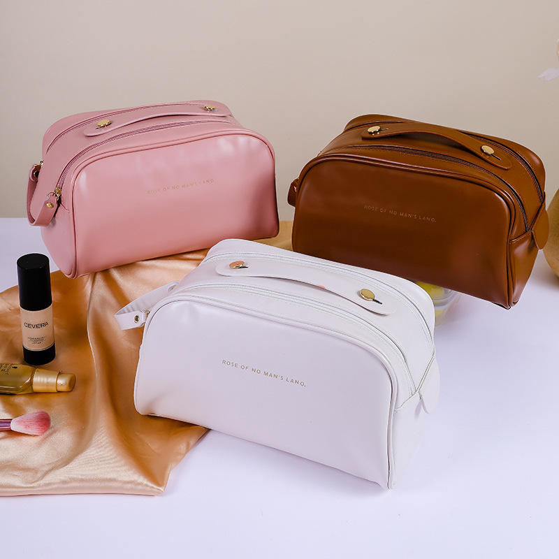 กระเป๋าใส่อุปกรณ์อาบน้ำสำหรับเดินทาง กระเป๋าใส่เครื่องสำอางแบบพกพา ความจุขนาดใหญ่ กระเป๋าเครื่องสำอางแบบซิปคู่ น้ำหนักเบา สีขาว กันน้ำ ขยายได้