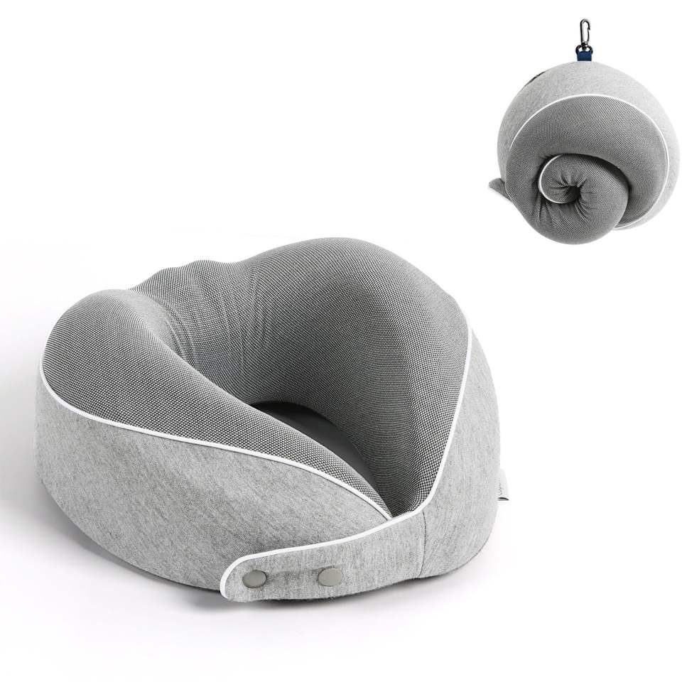 หมอนรองคอเมมโมรี่โฟมรูปตัวยูสำหรับเดินทาง ขนาด 28x26x14 ซม. พับได้ พกพาสะดวก สำหรับใช้บนเครื่องบิน สีเทาล้วน