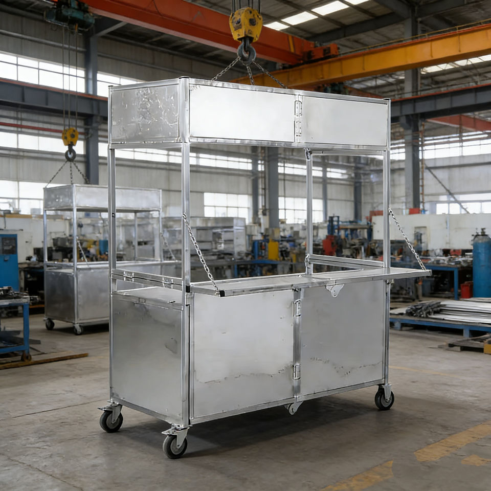 รถเข็นสแตนเลสพับได้ 4 ล้อ พกพาสะดวก ทนทานต่อการเกิดสนิม เหมาะสำหรับขายไอศกรีม ฮอทดอก กาแฟ ขนมขบเคี้ยว อาหารริมทาง