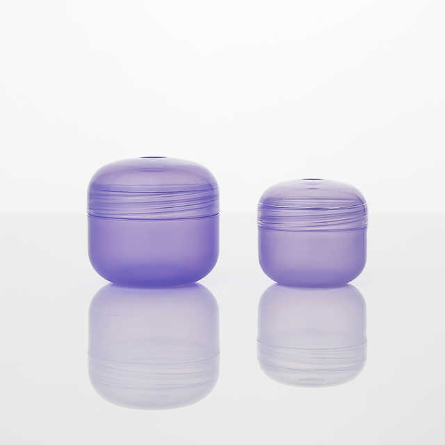 ขวดเครื่องสำอางสีม่วงพร้อมฝาขวดพลาสติกขนาดพกพาสำหรับบาล์มหรือโลชั่น