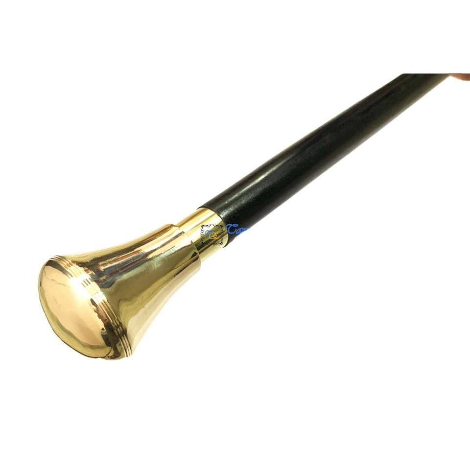 ไม้เท้าเดินป่าและตั้งแคมป์สไตล์เรือเดินสมุทร ทำจากทองเหลืองขัดเงาและไม้ พร้อมด้ามจับทรงกลม ไอเดียของขวัญจาก Tanishka Exports