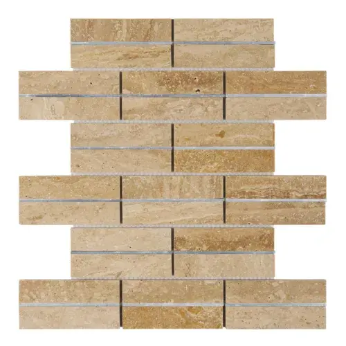 Travertine กระเบื้องห้องครัวหินอ่อนธรรมชาติสีเบจกันน้ำมันกระเด็นดีไซน์ทันสมัยพร้อมสีเงินฝังพื้นผิวเสริมส้นสำหรับพื้นวิลล่า