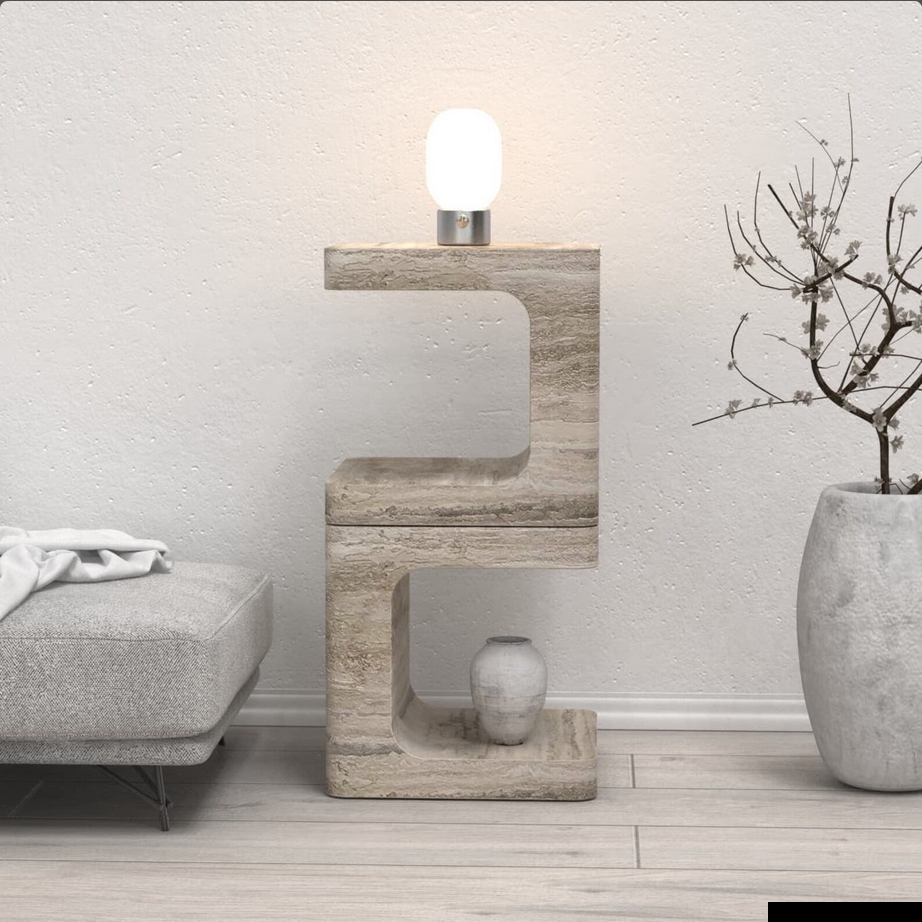 Travertine โต๊ะข้างรูปตัว S ทนไฟหรูหราทันสมัยเฟอร์นิเจอร์หินธรรมชาติสำหรับห้องครัวและห้องรับประทานอาหาร