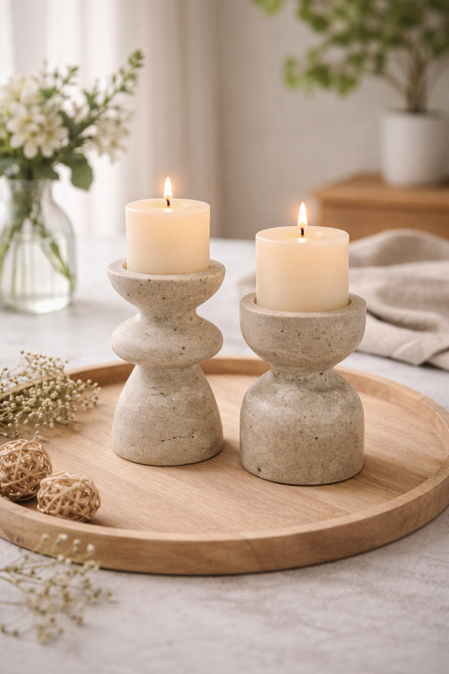 เชิงเทียนหินทราเวอร์ทีน | เชิงเทียนอีสเตอร์ทำมือจากหินอ่อนธรรมชาติ สำหรับตกแต่งบ้านและจัดโต๊ะ ทนทาน