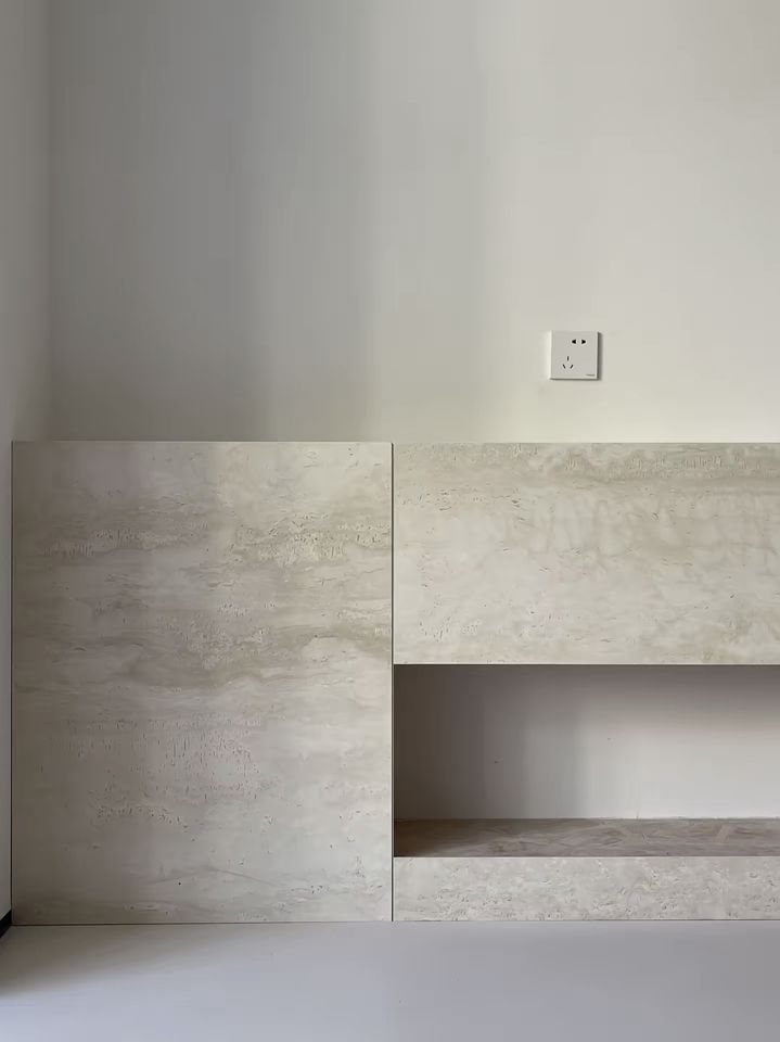 แผ่นผนังตกแต่งหินอ่อน Travertine แผ่นหินอ่อน Travertine แบบยืดหยุ่น กระเบื้อง Travertine คุณภาพสูง น้ำหนักเบา