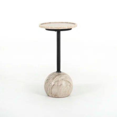 Travertine sphere round ball base side table with black metal top unique modern luxury drink table hot selling durable designer