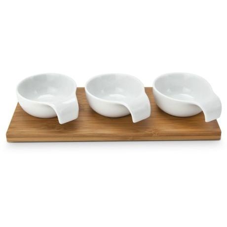 Tre Bamboo Small Serving Bowls Set High Quality Eco-Friendly Enamel Dish Painted Finish Includes Bamboo Spoon Packaged Carton