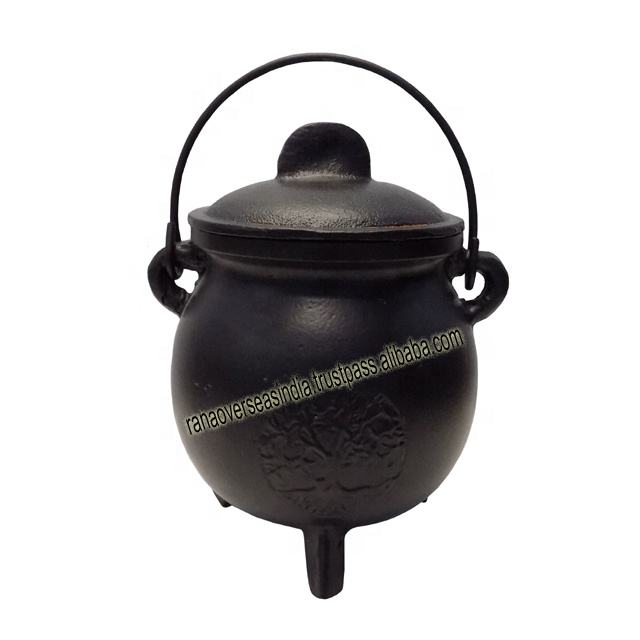 ชื่อสินค้า:หม้อเหล็กหล่อทรงต้นไม้พร้อมฝาปิด ด้ามจับ และขาสามขา