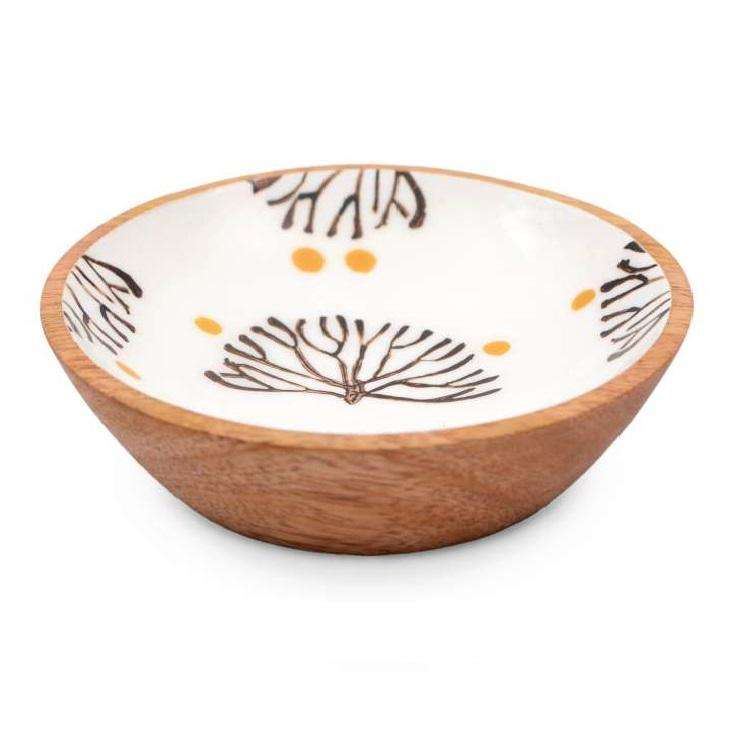 ชามไม้มะม่วงลายต้นไม้พร้อมพิมพ์ลายดอกไม้เคลือบดีไซน์ภายในสำหรับตกแต่งโต๊ะเครื่องใช้บนโต๊ะอาหาร