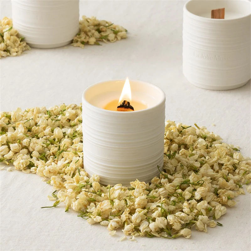 เทียนหอมไส้ตะเกียงไม้เซรามิก