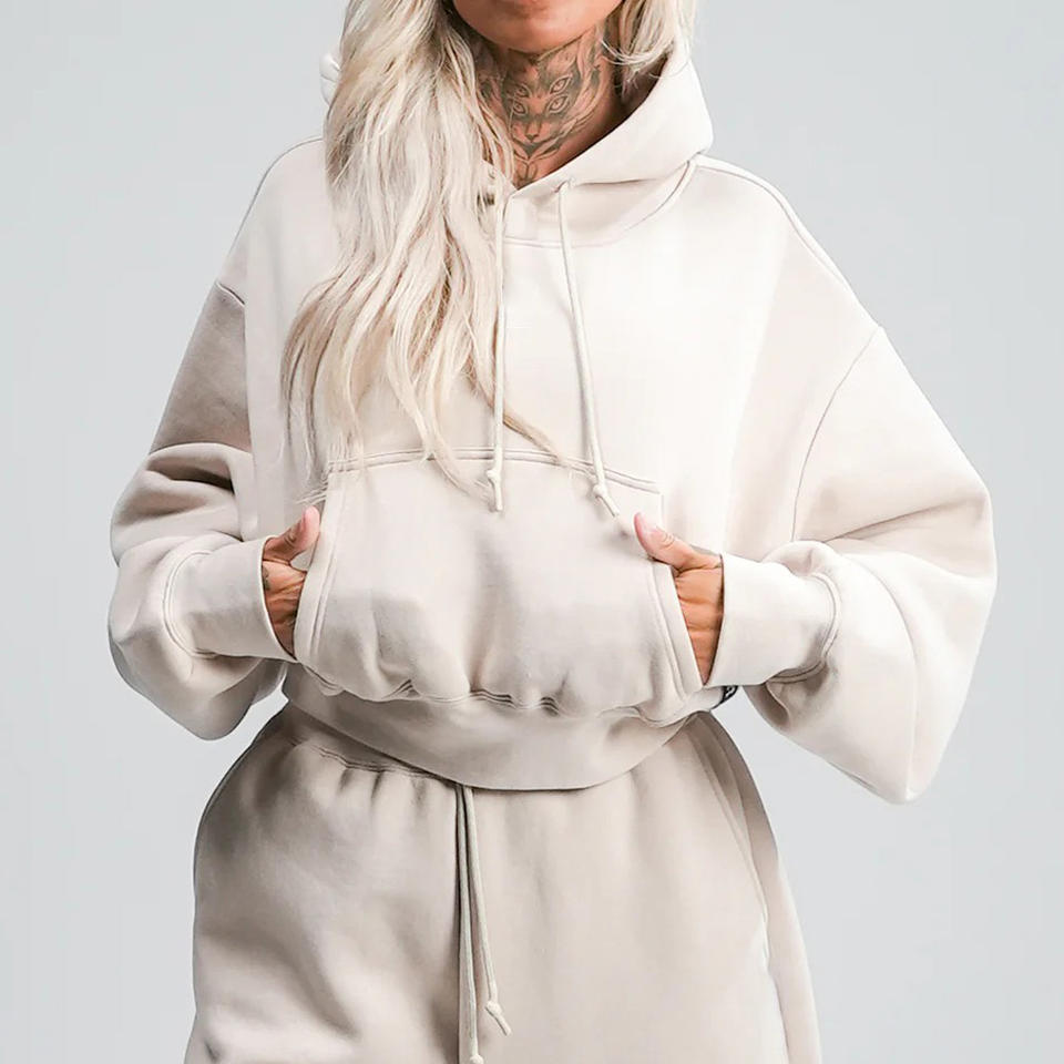 TREND boxy Fit hoodie ผ้าคอตตอนออร์แกนิกแบบสวมหัวสไตล์ผู้หญิงซักกรดและเชือกดึงปรับได้เพื่อความสบาย