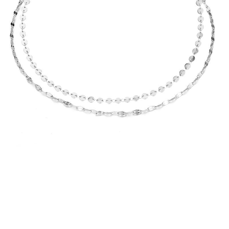 สร้อยคอทรงกลมแบบสองชั้นทันสมัยสร้อยคอเงินสแตนเลสสตีลสีทองสำหรับผู้หญิง626 uionen