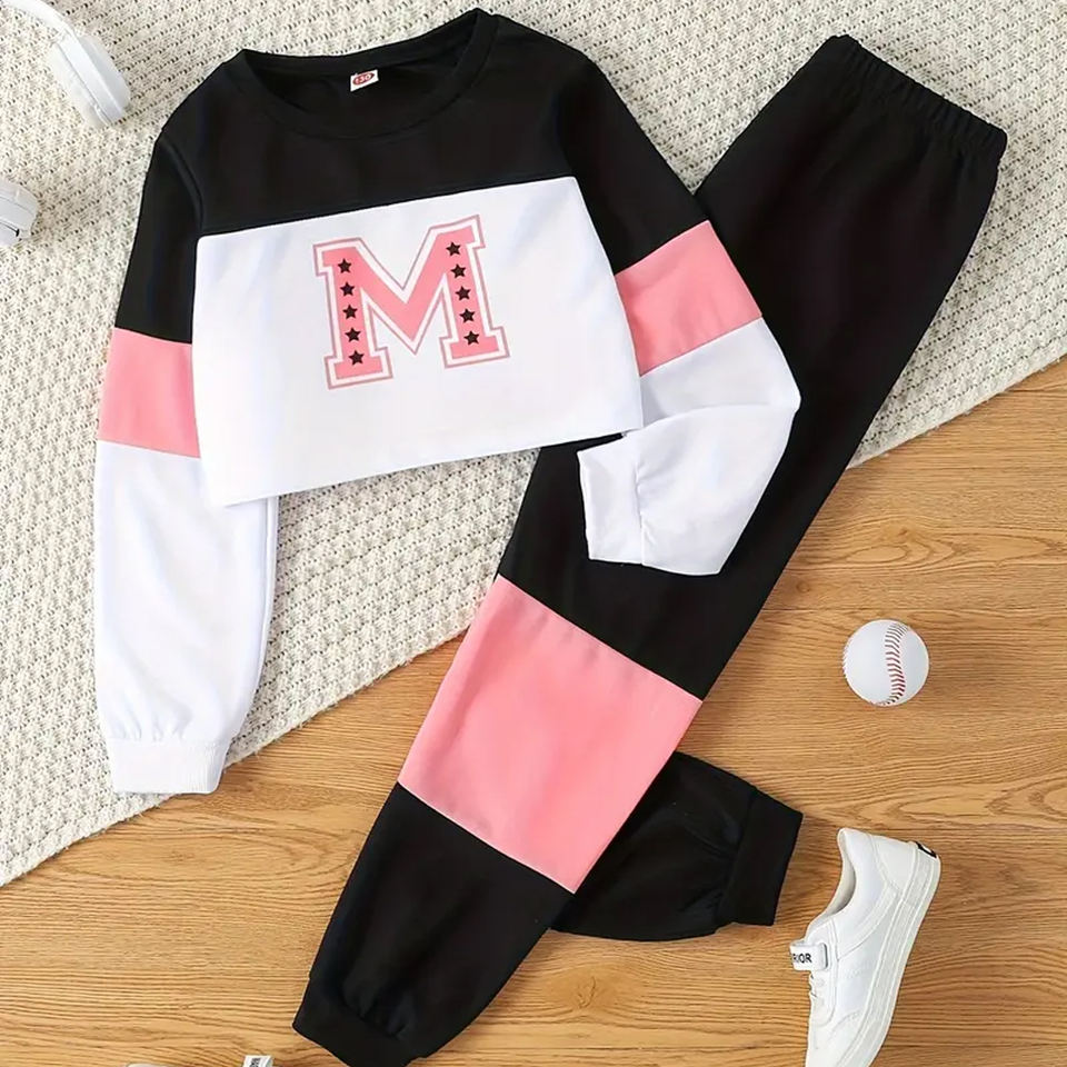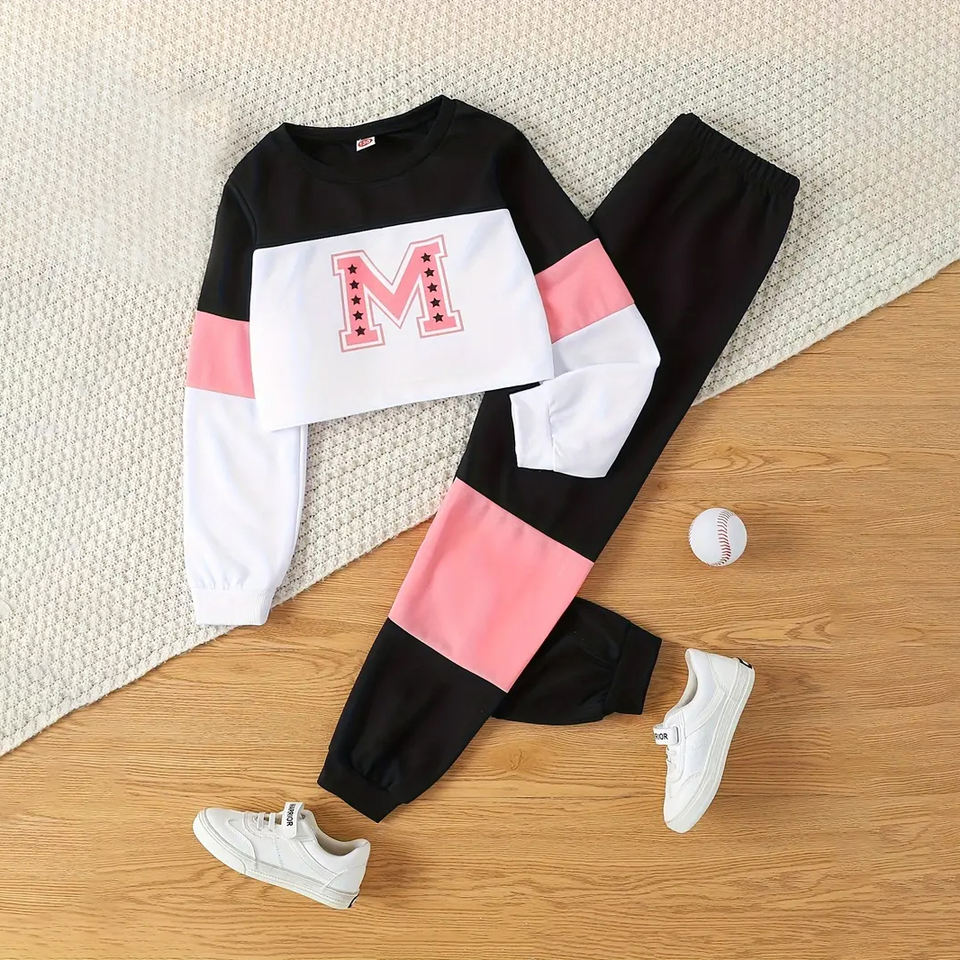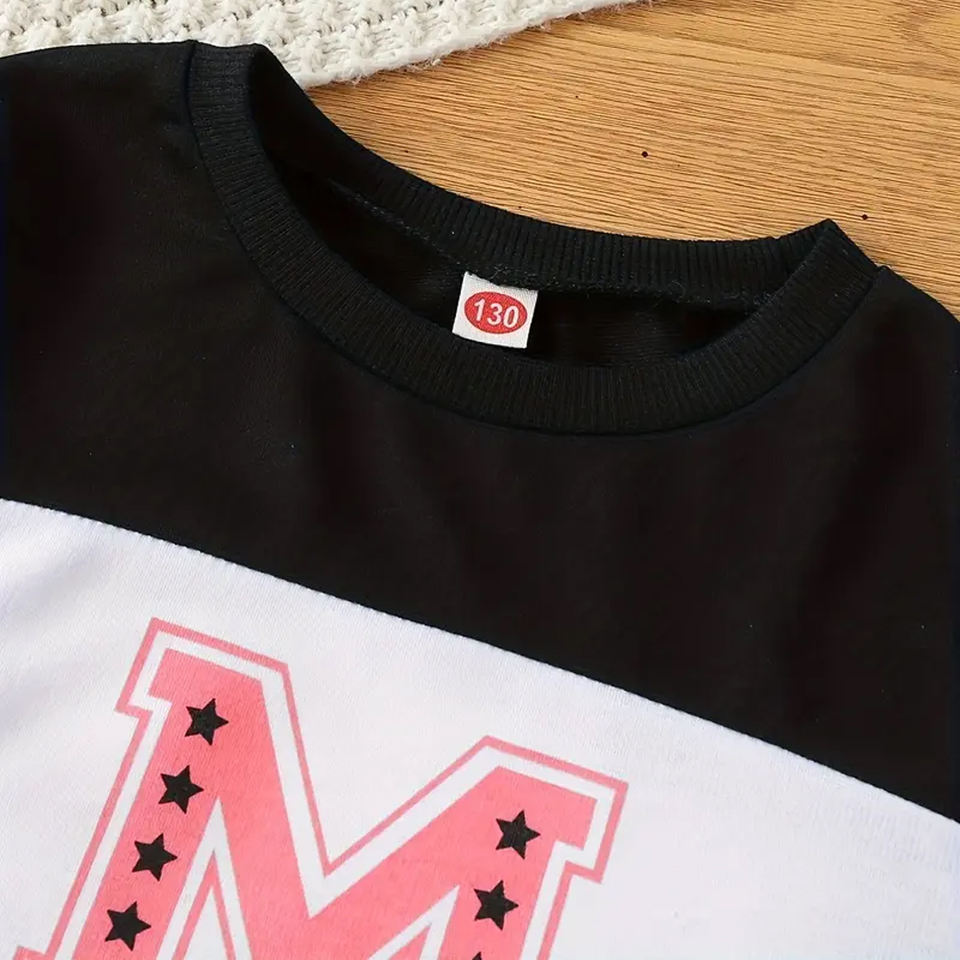 ชุดเสื้อสเวตเตอร์คอกลมแขนยาวพิมพ์ลายตัวอักษรชุดแฟชั่นสำหรับฤดูใบไม้ผลิและฤดูใบไม้ร่วง
