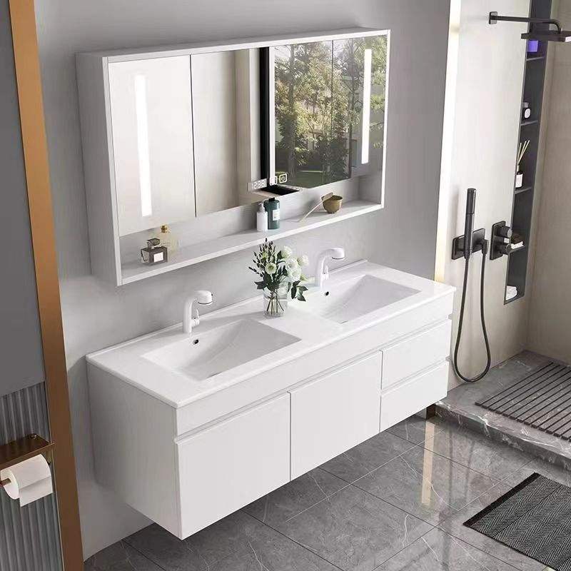 โต๊ะเครื่องแป้งในห้องน้ำทันสมัยทันสมัยตู้ติดผนังกระจก LED ตู้เก็บของขนาดใหญ่กันน้ำอ่างเซรามิก