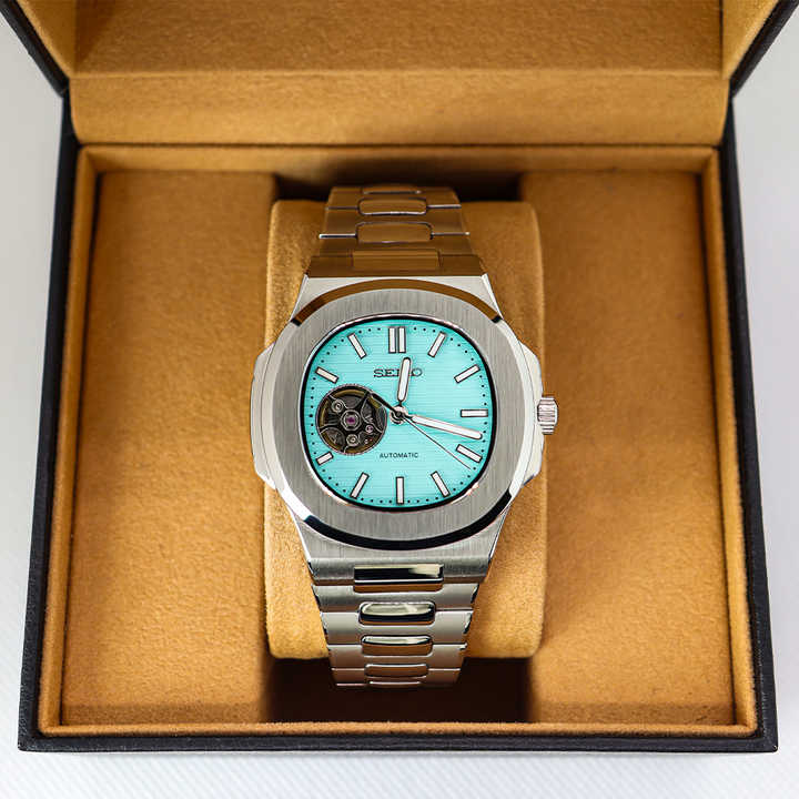 นาฬิกาข้อมือผู้ชายแบบกลไก รุ่น Trend Prodoucs 2026 5BAR กันน้ำ สีน้ำเงิน โครงสร้างโปร่งใส พร้อมกลไก NH38 นาฬิกาอัตโนมัติ